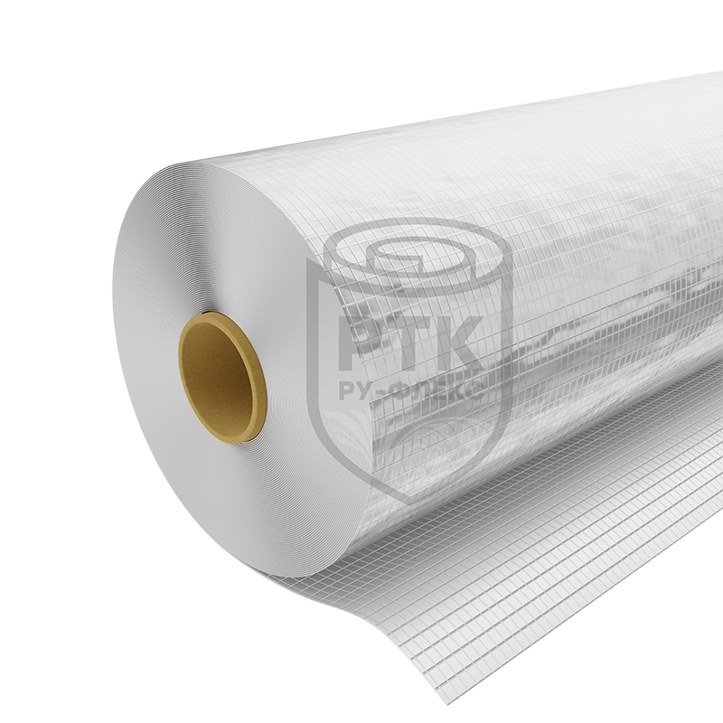 Покрытие РУ-ФЛЕКС МЕТАЛЛ. Изготавливается из алюминиевой фольги армированной стеклосеткой. Предназначено для использования в производстве отражающей изоляции, фольгированных утеплителей и других технических целей. Обеспечивает защиту от механических повреждений.
